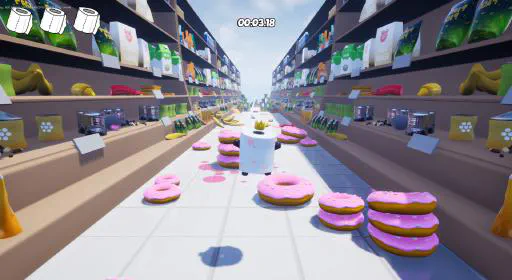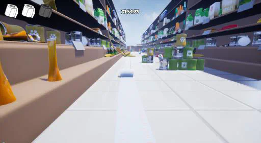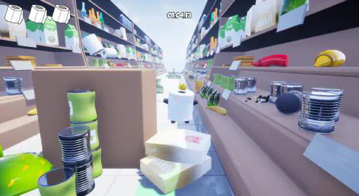 In PepaFatal! the player controls the toilet paper roll Pepa. They must try to avoid the hands that want to grab all the toilet paper from the supermarket in a panic buy. To make matters worse, there are all sorts of products scattered on the floor that have fallen from the shelves. By rolling and jumping, the player also dodges these obstacles to get the highest score in the end!